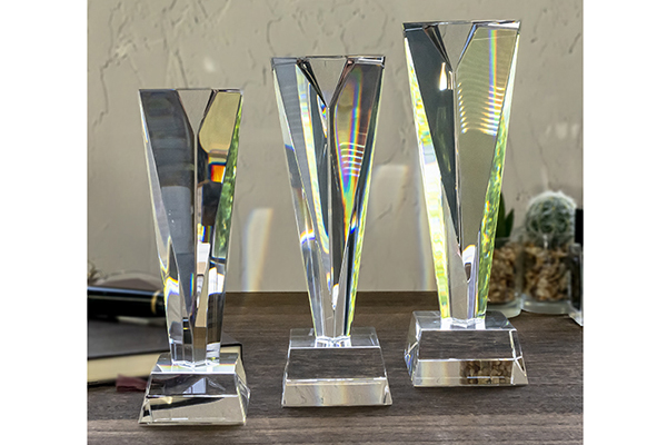 testシンプルな素材にカッティングを施したクリスタルアワードトロフィーです。社内表彰やスポーツ大会等のアワードアイテムや記念品としておすすめです。